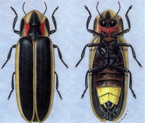 The firefly, also known as the lightning bug, is actually neither a fly nor a bug, but a beetle, say Purdue entomologists. This particular firefly is called Say’s firefly (Pyractomena angulata), one of about 175 species of fireflies in the United States. (Scientific illustration by Arwin Provonsha, Purdue Department of Entomology.)