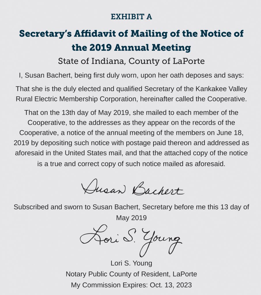 A copy of the proof of mailing of the Notices and Secretary’s Affidavit is appended as EXHIBIT A, at the end of these minutes and was included in the member program distributed to each member who appeared and registered at the meeting.