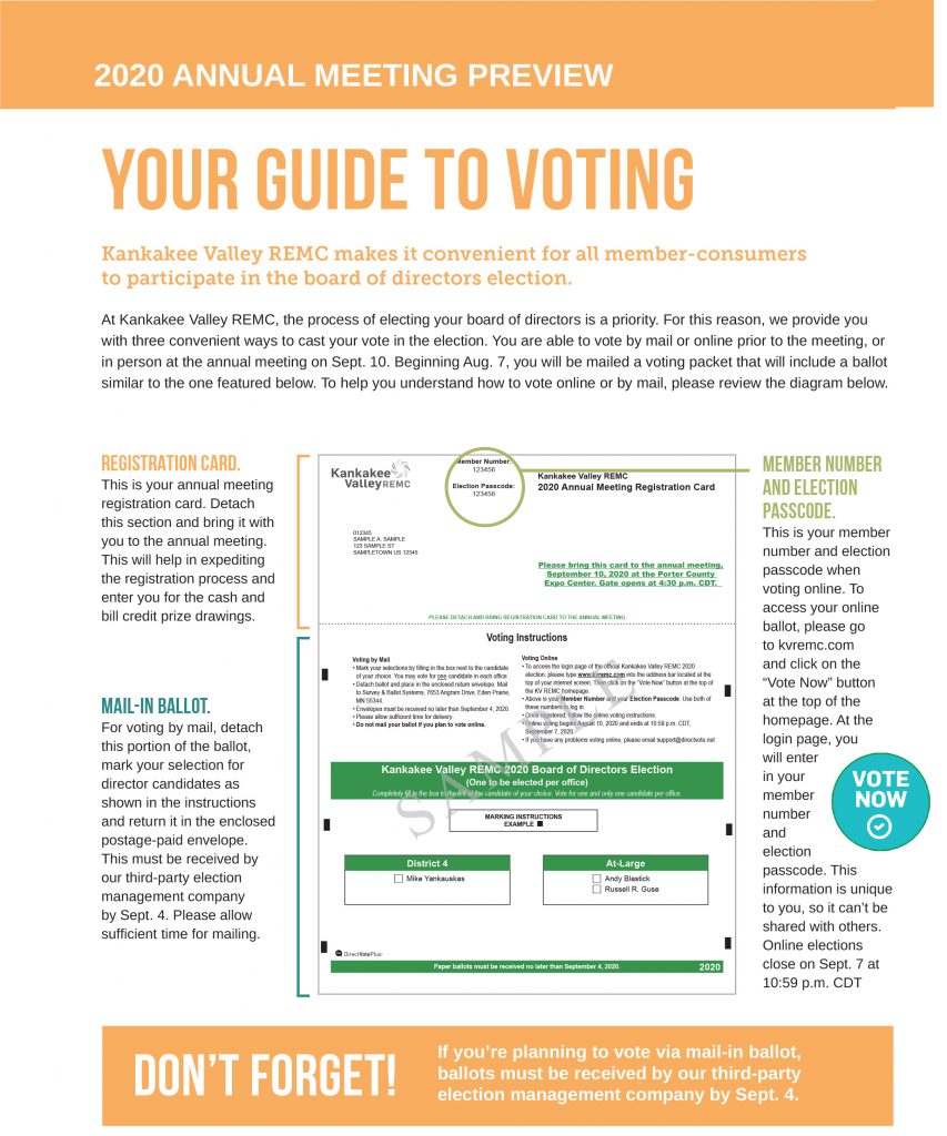 2020 KV REMC Annual Meeting voting guide By Indiana Connection Posted on Jul 27 2020 in Kankakee Valley REMC Related Stories Smart energy choices, shared savings KV REMC 2026 Scholarship opportunities Water heater switch program discontinues Jan. 1
