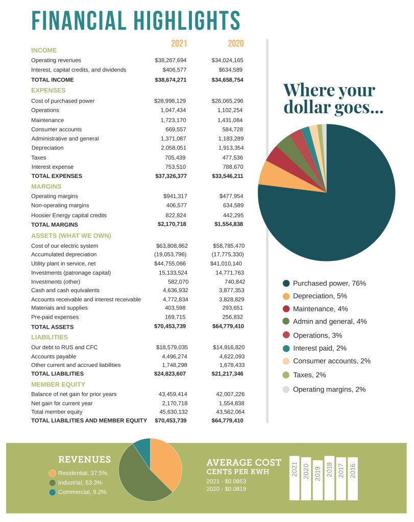 2021 financial highlights By Indiana Connection Posted on May 30 2022 in Southern Indiana Power Related Stories You are the heart of our programs Board petitions available in January Member Spotlight: Matilda’s Event Barn