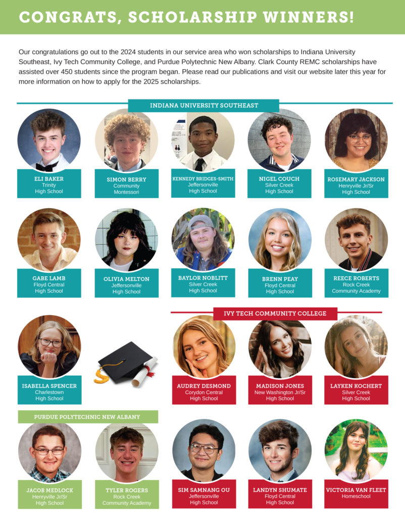 2024 scholarship winners announced By Indiana Connection Posted on Jun 22 2024 in Clark County REMC Related Stories Hoosier Energy advances pollinator habitat conservation efforts Providing reliable service while staying financially strong Donate to our food drive