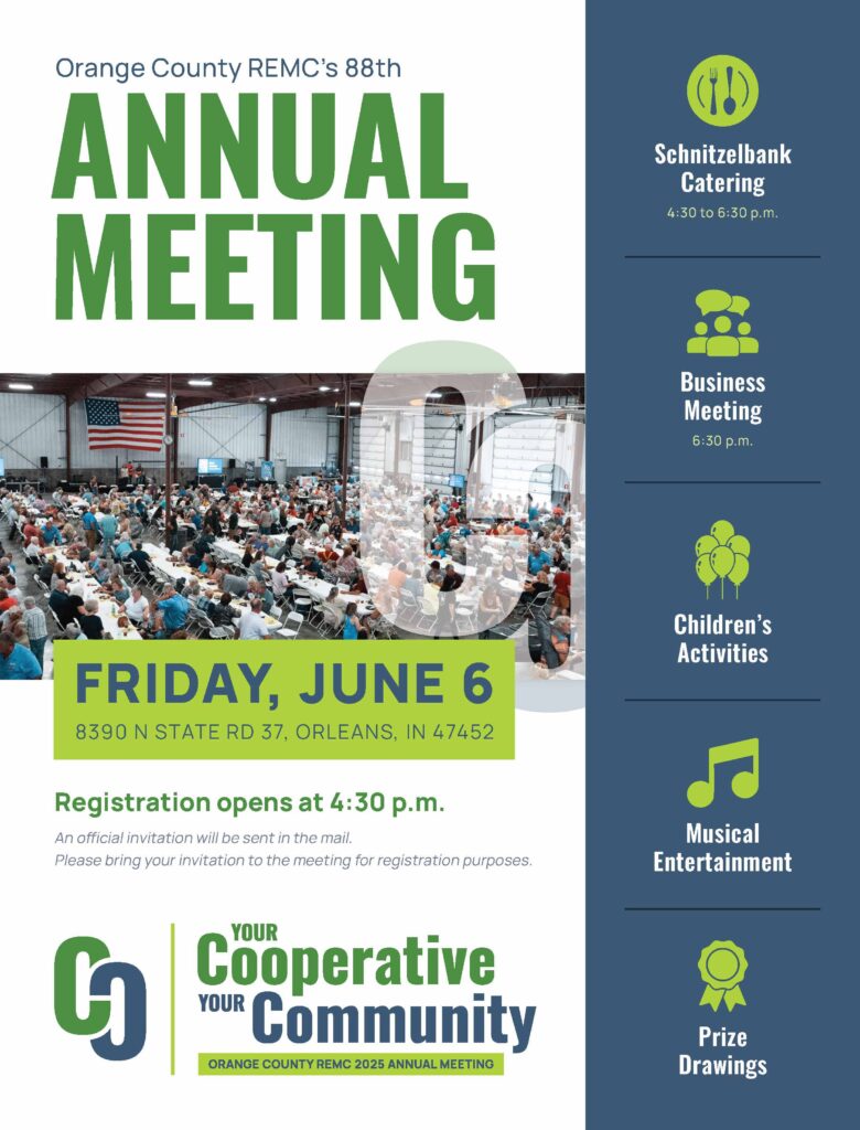 2025 Annual Meeting Agenda By Indiana Connection Posted on May 10 2025 in Orange County REMC Related Stories A season of gratitude and community 2025 Member Appreciation Day Join us for a Christmas toy drive