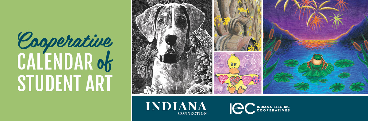 Indiana Electric Cooperatives and Indiana Connection are proud to produce the 2026 Cooperative Calendar of Student Art, celebrating young Hoosier artists. The calendar is available through participating electric cooperatives and can also be ordered directly from Indiana Connection.