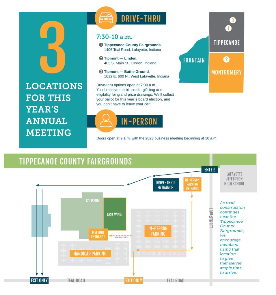 3 convenient locations for your annual meeting By Indiana Connection Posted on Sep 04 2023 in Tipmont Related Stories Where does the power come from? Electric rates to increase by 5% Camp Kilowatt 2025