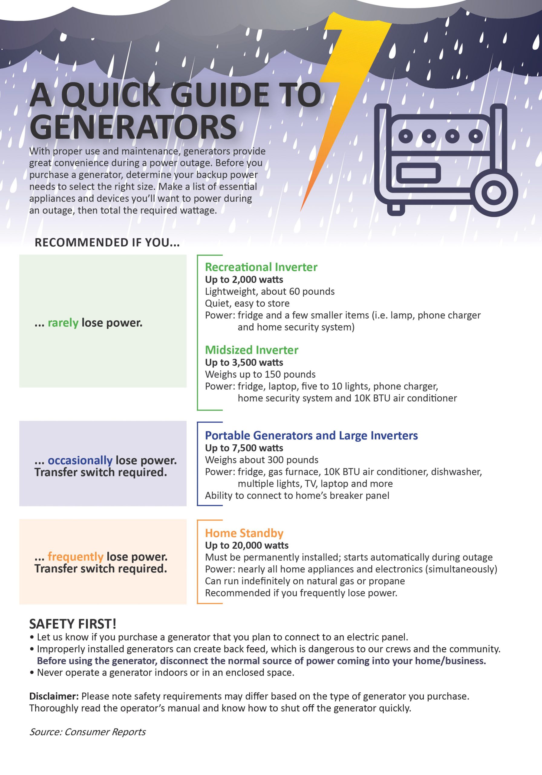 A quick guide to generators By Indiana Connection Posted on Jul 04 2023 in Southern Indiana Power Related Stories You are the heart of our programs Board petitions available in January Member Spotlight: Matilda’s Event Barn