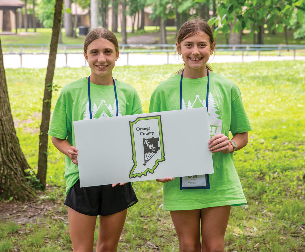 Nautica Purkhiser of French Lick and Katie Edwards of Campbellsburg were sponsored by Orange County REMC to attend Camp Kilowatt. The camp was held June 4-7 at Camp Tecumseh in Brookston. More than 90 campers representing 28 Indiana electric cooperatives attended the event, along with chaperones from local co-ops.