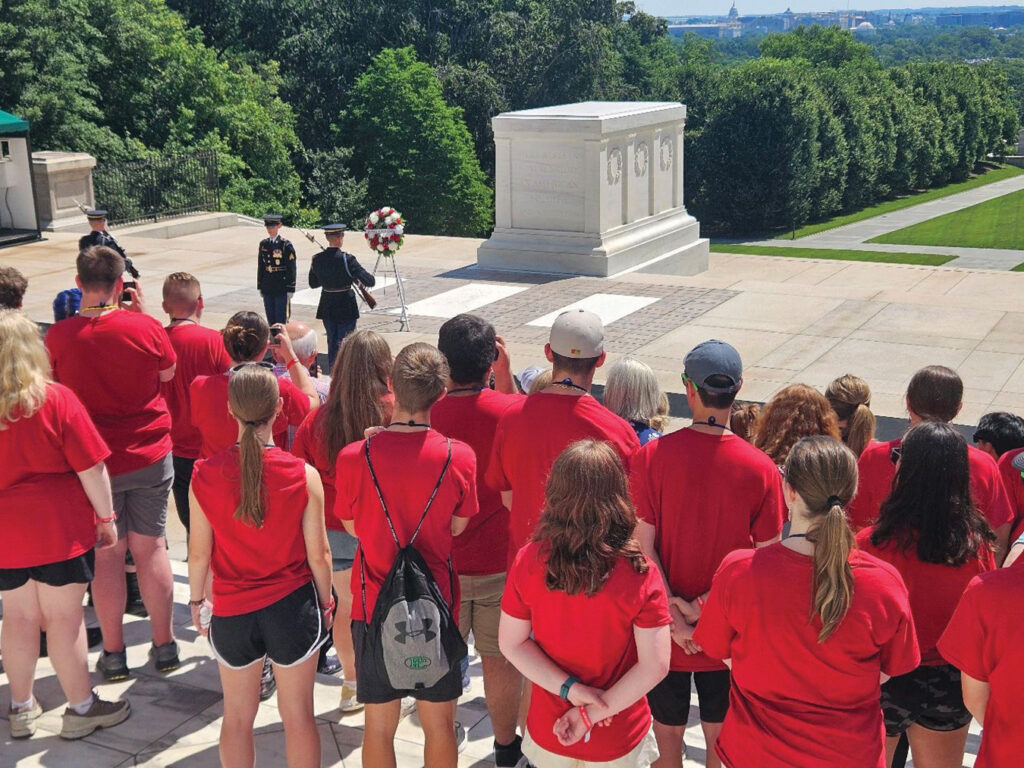 Indiana delgates on the 2025 Youth Tour to Washington, D.C., watch the changing of the guard at the Tomb of the Unknown Soldier in Arlington National Cemetary. Students had the opportunity to visit the Flight 93 Memorial, Gettysburg Battlefield, National Museum of the Marine Corps, Smithsonian museums and many other sites during the tour.