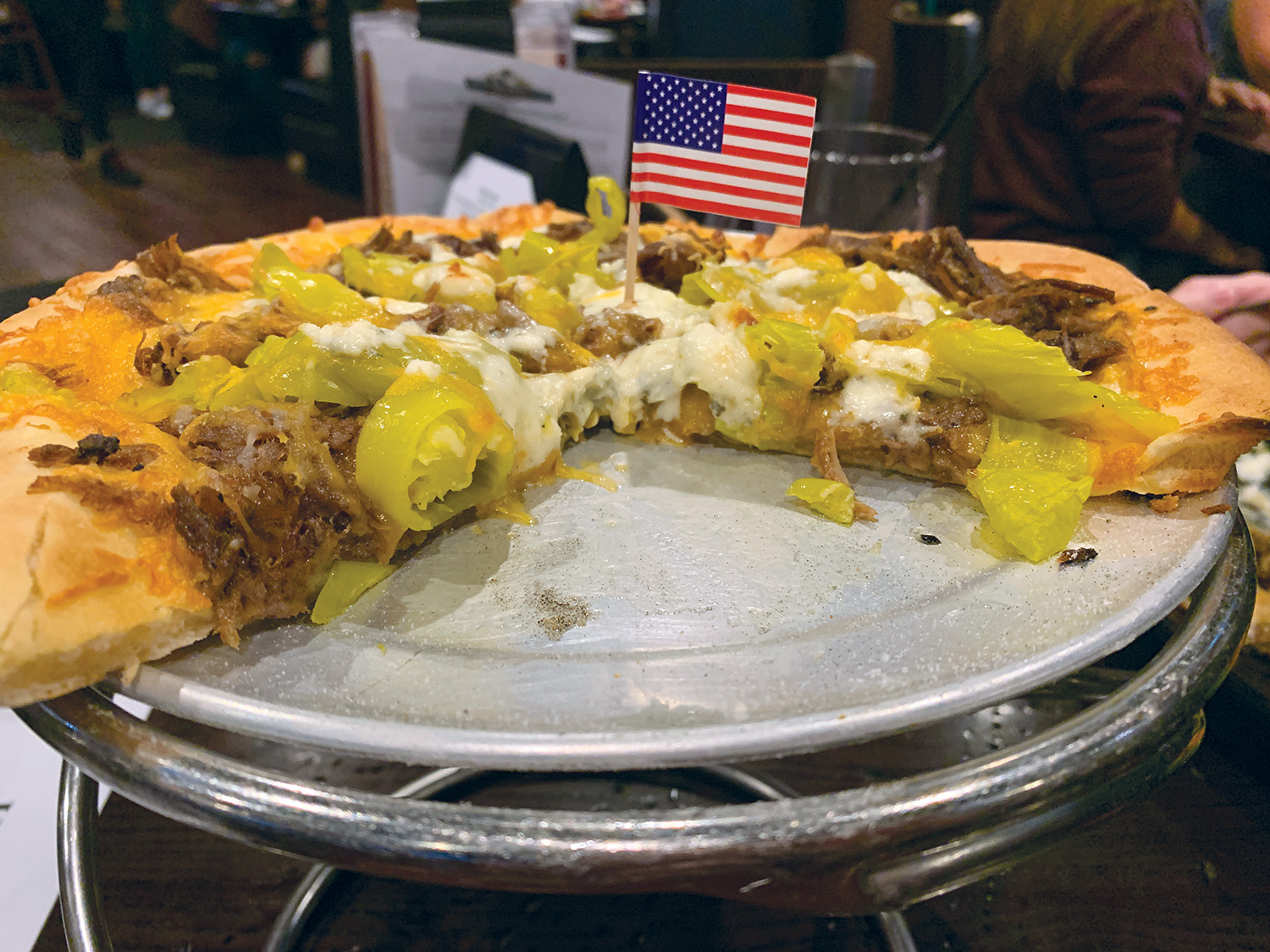Food-Picture-2-WEB By hhuffman Posted on Aug 22 2021 in With pot roast, blue cheese crumbles and pepperoncini atop it, the Opportunity Pizza is truly revolutionary.