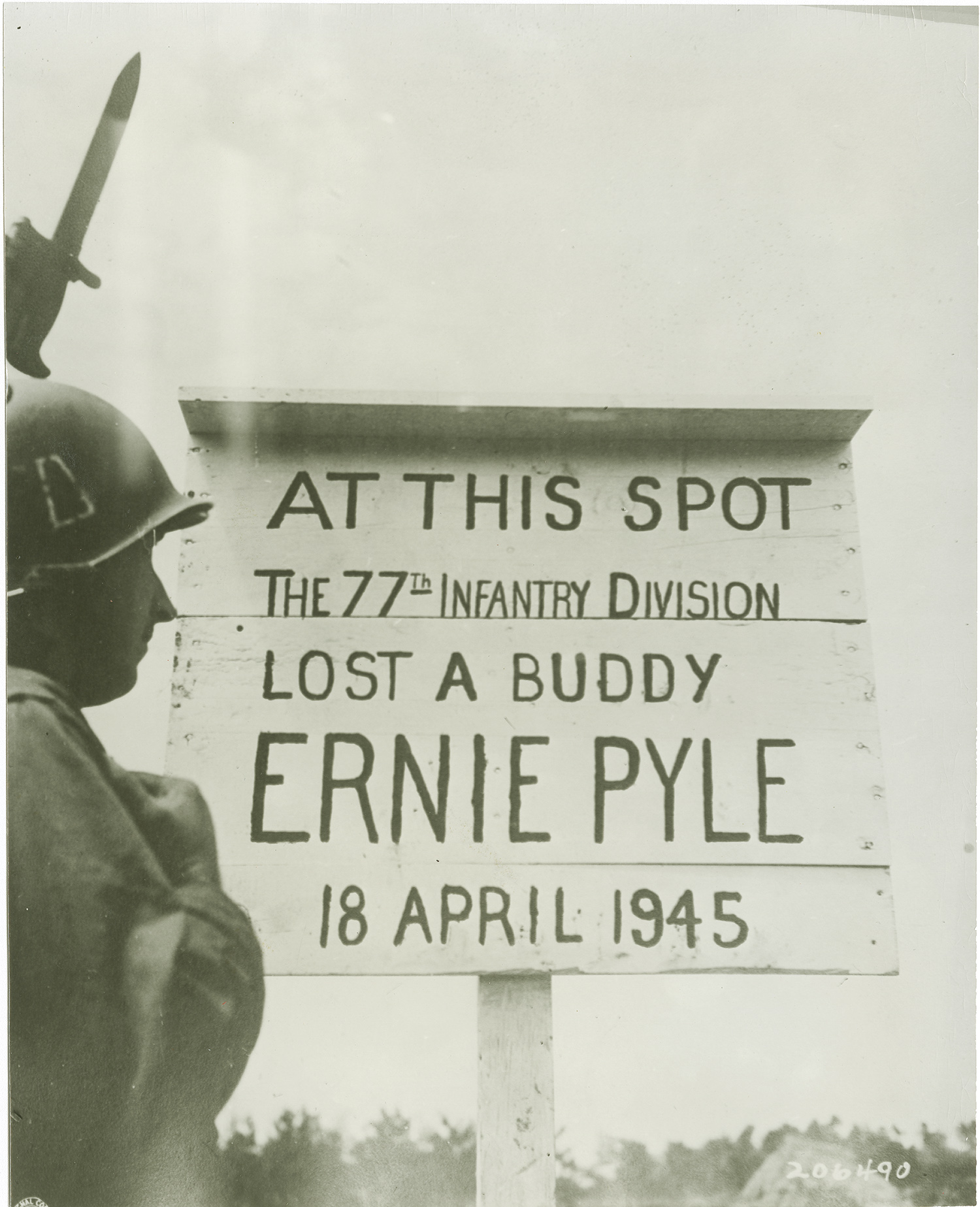 Pyle was so well known that he even appeared in a 1944 magazine advertisement for Chesterfield cigarettes above the caption: “On every front I’ve covered … with our boys and our allies, Chesterfield is always a favorite.”