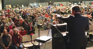 KVREMC CEO Dennis Weiss speaks to a record crowd of 597 registered members during the annual meeting.