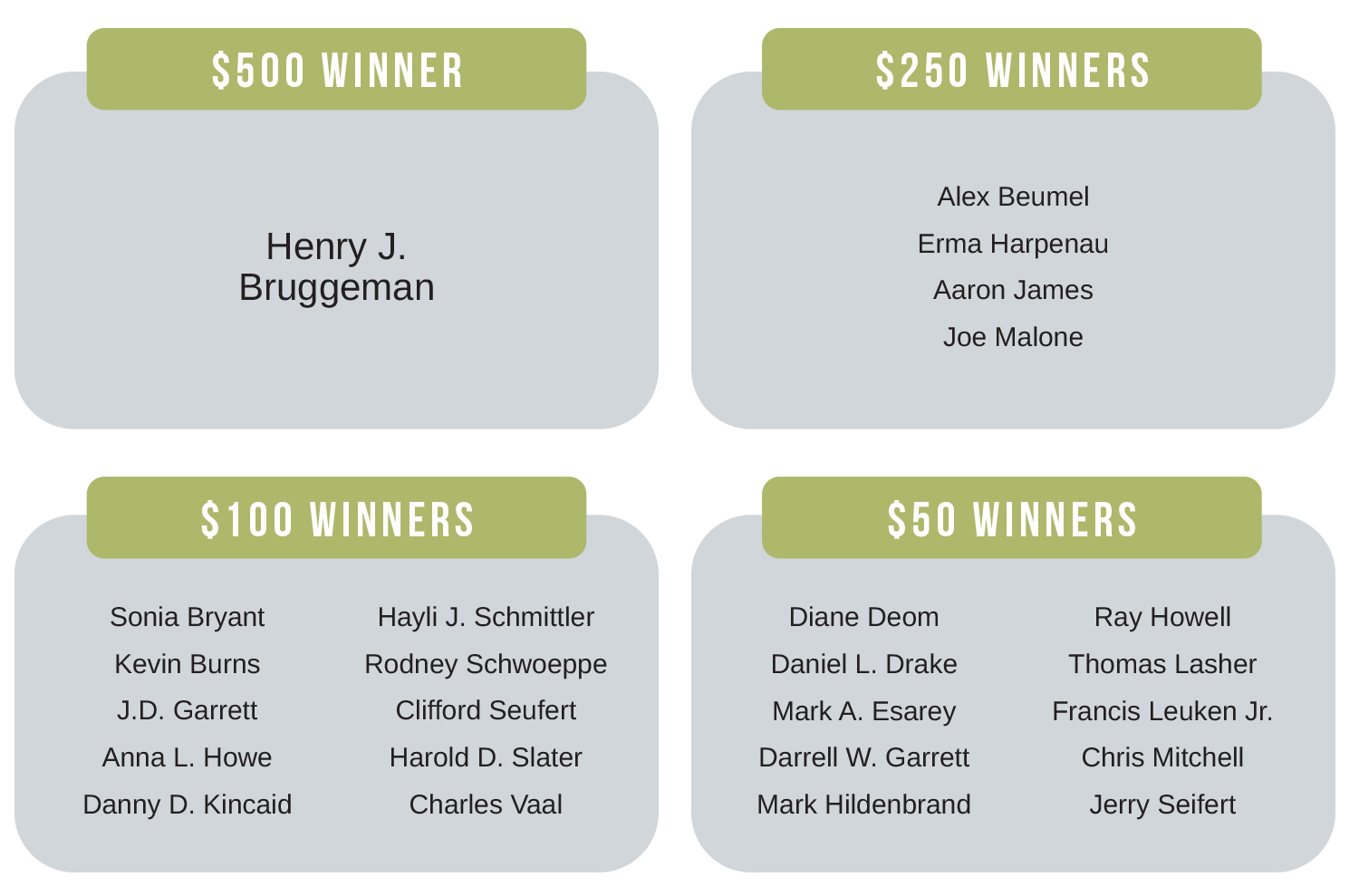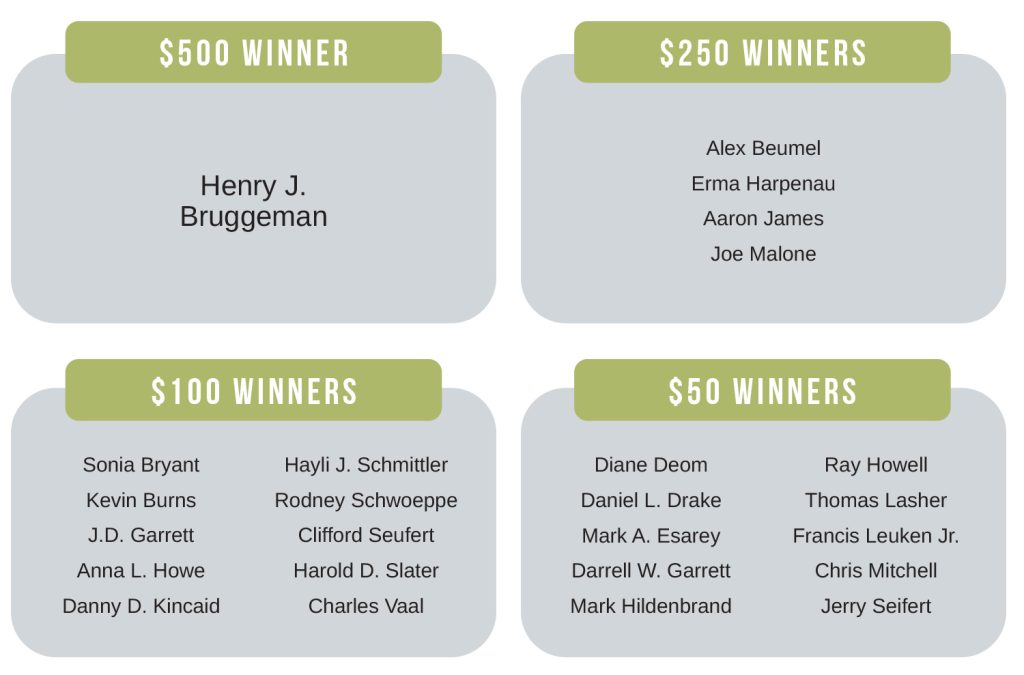 Annual Meeting prize drawing winners By Indiana Connection Posted on Jun 04 2023 in Southern Indiana Power Related Stories You are the heart of our programs Board petitions available in January Member Spotlight: Matilda’s Event Barn