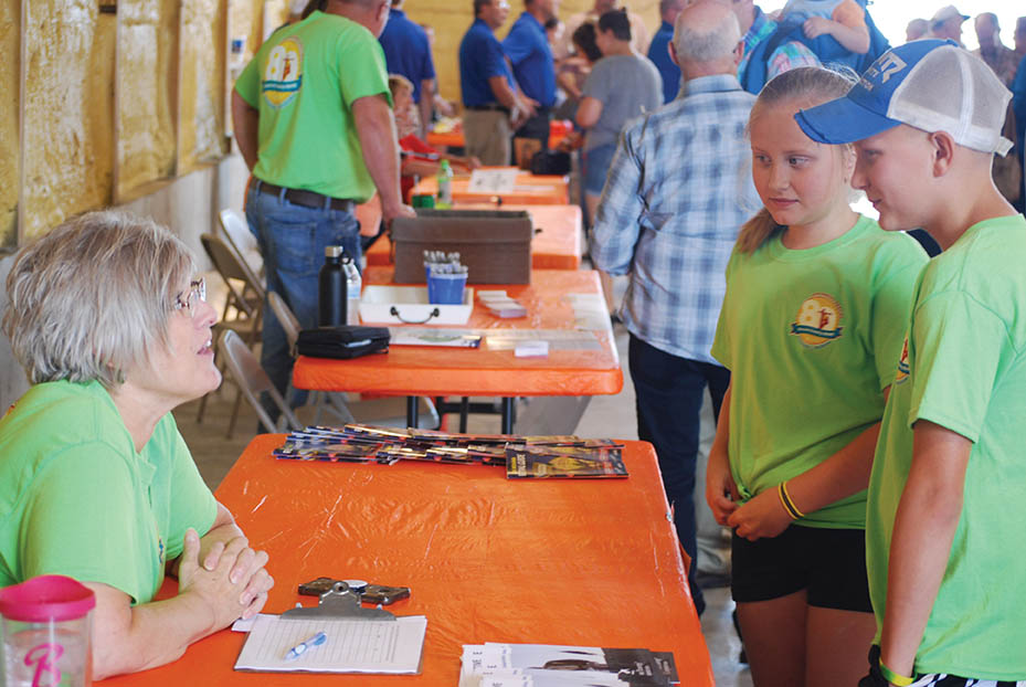 Decatur County REMC employee Becky Metz talks to these two curious youngsters.