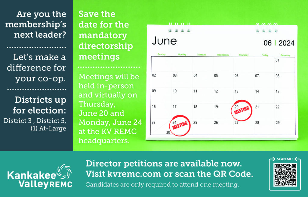 Are you the membership’s next leader? By Indiana Connection Posted on May 30 2024 in Kankakee Valley REMC Related Stories Smart energy choices, shared savings KV REMC 2026 Scholarship opportunities Water heater switch program discontinues Jan. 1