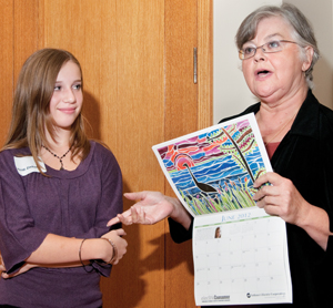 At the reception, Hoosier Salon executive director Donnae Dole introduces the calendar’s June artist, Heidi Ziebarth. Dole introduced each of the 13 attending students and talked a little about their winning entry. Heidi was a sixth grader at Warsaw’s Harrison Elementary when she created the mosaic for the calendar last spring.