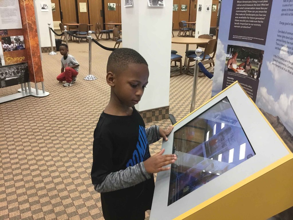 Visitors look over the national and local components of the “Crossroads” exhibit when it was in other states.