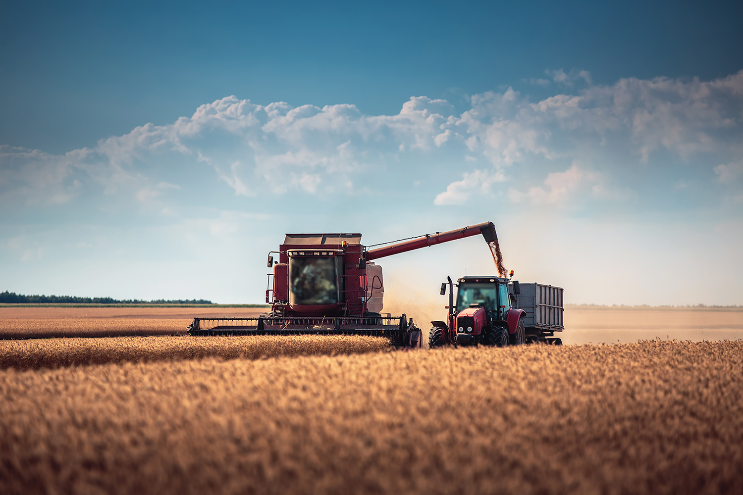 Combine harvester agriculture machine harvesting golden ripe wheat field By hhuffman Posted on Aug 24 2022 in