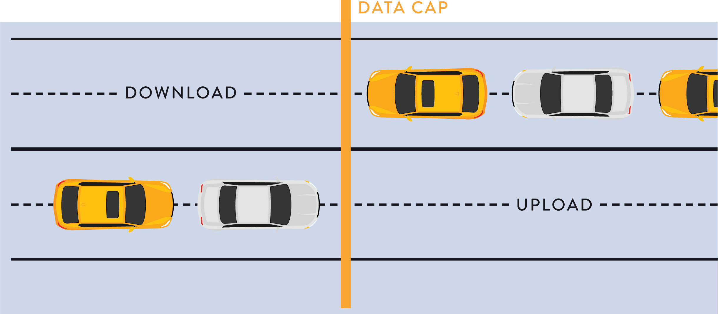 Everything involved with bandwidth, speed, or data caps has an upload and download stream. The upload data highway is used when backing up your files to the cloud. This is usually the smaller number listed in unsymmetrical internet plans. On the other side, download is used for streaming and web browsing. Most data usage is downloaded data. Some activities, like video conferencing and gaming, involve uploading and downloading.