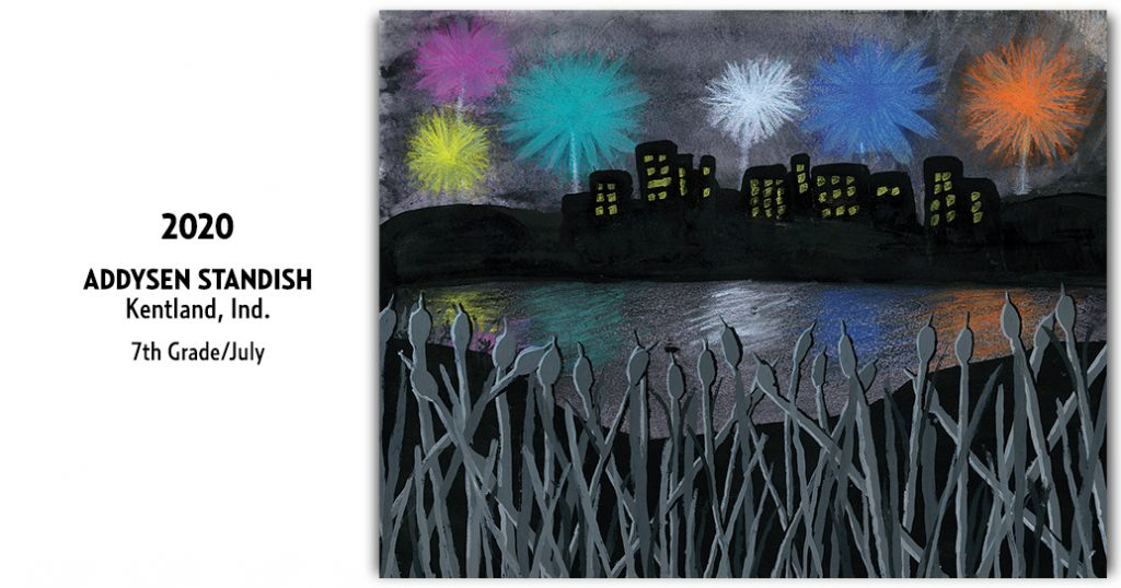 Calendar of Student Art: 7th Grade July Art • 1999-present By Richard G. Biever Posted on Apr 27 2017 in Gallery of Art Seventh graders set off the biggest fireworks each year, illustrating July. GO TO CALENDAR OF STUDENT ART: 6th Grade Go to Calendar of Student ArT: 8th Grade Go to Gallery of Art Home Page Related Stories Calendar of Student Art 2019 Calendar of Student Art: 12th Grade Calendar of Student Art: 11th Grade