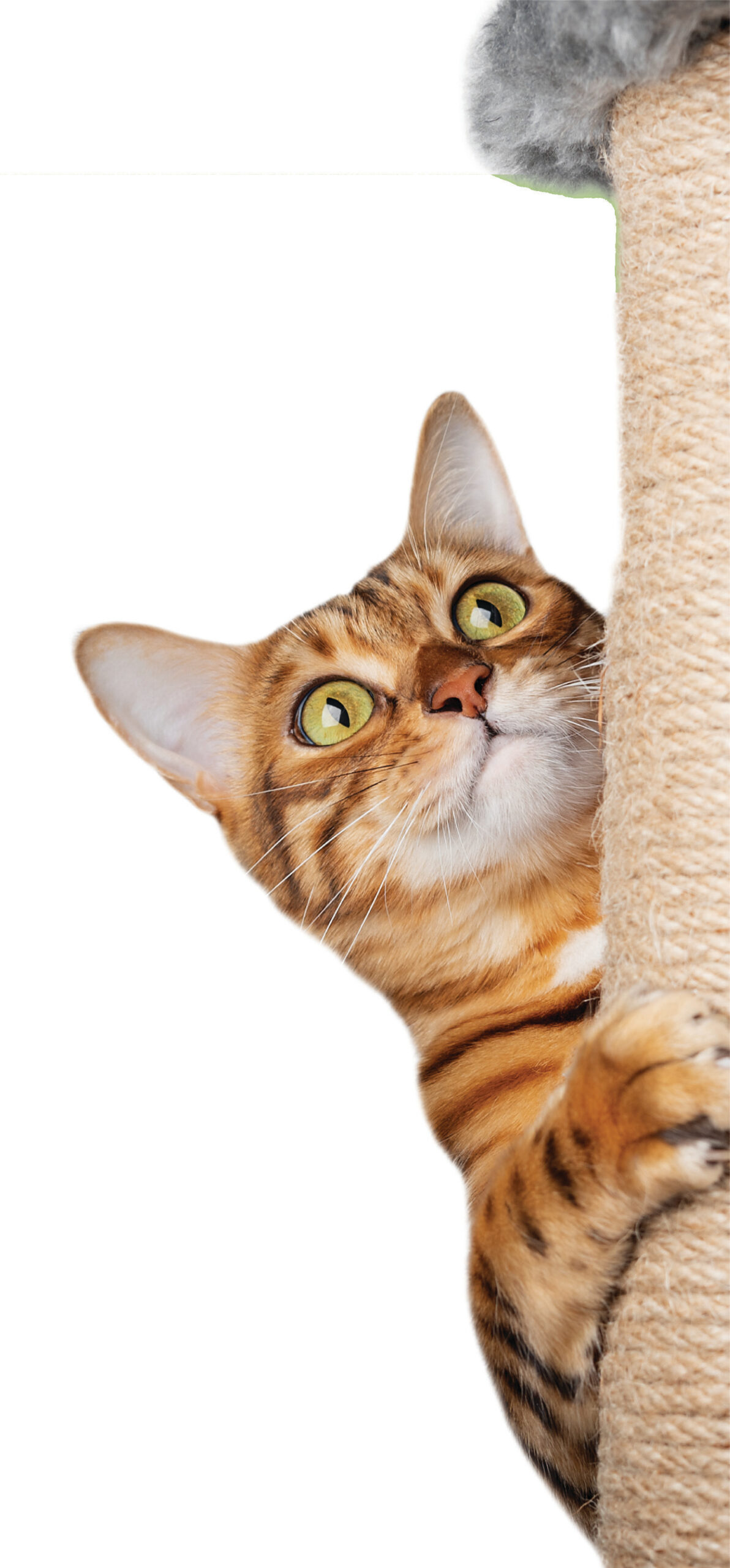 A bored cat often means a destructive cat, and while cats are seemingly comfortable solo, it doesn’t mean they don’t need stimulation. Provide an enriching environment that keeps your cat busy, making scratching less attractive. Stock your cat’s stash with interactive toys and puzzle feeders, and make sure family members take time to play with them. Outfit their space with cat trees and shelves, which give them a place to perch and observe things from a new vantage point. The climbing action of scaling a cat tree can help feed their need to work their claws, further reducing the risk of unwanted scratching.