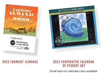 The 2023 Cooperative Calendar of Student Art and the 2023 Farmers’ Almanac are available for pickup at the BCREMC office during regular business hours.