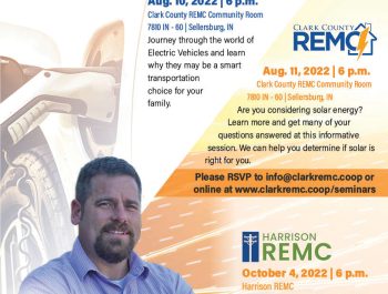 The Harrison REMC Annual Meeting will be held Monday, May 5, from 4 to 6:30 p.m. at the Harrison County Fairgrounds and Tuesday, May 6, from 11:30 a.m. to 6:30 p.m. at the Harrison REMC headquarters in Corydon. Directions to fairgrounds: From I-64, take Highway 135 south to SR 62. Go east on SR 62 to Capitol… Continue reading.
