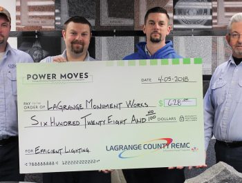 Taking advantage of LaGrange County REMC’s POWER MOVES® rebate program doesn’t have to mean huge renovations or investment, but it does produce big rewards. LaGrange Monument Works recently transitioned to high efficiency LED tube lights from its older fluorescent bulbs and ballasts. The company then applied to receive a rebate through LaGrange County REMC for… Continue reading.