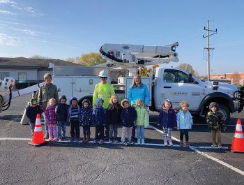Journeyman Lineman Doug MacLain visited Little Discoveries preschool and discussed how to stay safe around electricity. He also showed the students how a bucket truck works.
