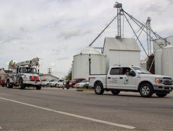 Michael Newlin, Orange County REMC foreman lineman, and Michael Anderson, Orange County Fiber coordinator, participated in the Dogwood Parade with their families on April 30.
