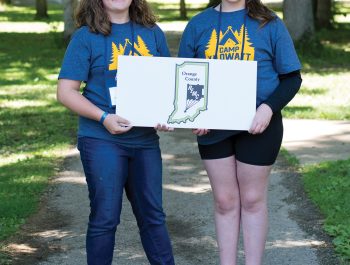 Orange County REMC sponsored, from left, Sydney Flynn and Faith Edwards at the annual Camp Kilowatt. The camp was held June 8-11, at Camp Tecumseh in Brookston, Indiana. Students entering seventh grade this fall were eligible to attend and were selected by their local cooperative to participate in the four-day program.