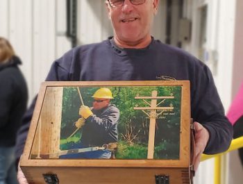 Rod Allen retired in January after 36 years of service at Steuben County REMC. Allen was gifted a memory box at his retirement party with a photo of him during a 2013 pole top rescue training. Happy retirement!