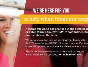 As we all deal with the new realities brought on by the coronavirus, I want to assure you that Warren County REMC has been here to help you. Our staff has continued to do their best to provide the reliable electric service you have come to expect from your electric cooperative. We realize that after… Continue reading.