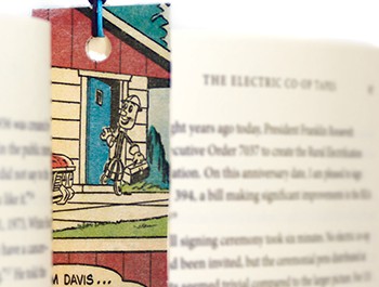 What you need: One page from comic book One ruler One pen or pencil One pair of scissors One piece of cardstock paper or file folder One bottle of craft glue One roll of packing tape One single hole punch Embroidery floss, yarn or thin cord What to do: Using a ruler and a pen… Continue reading.