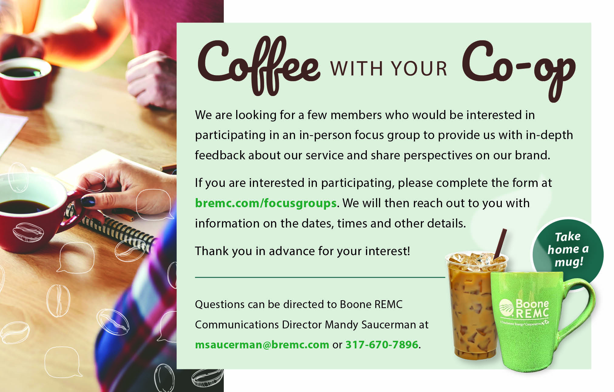 Come have coffee with your co-op By Indiana Connection Posted on Oct 02 2024 in Boone Power Related Stories From broken washer to big win Trip to Washington, D.C., provides students with lessons on local power More Boone Power programs for students