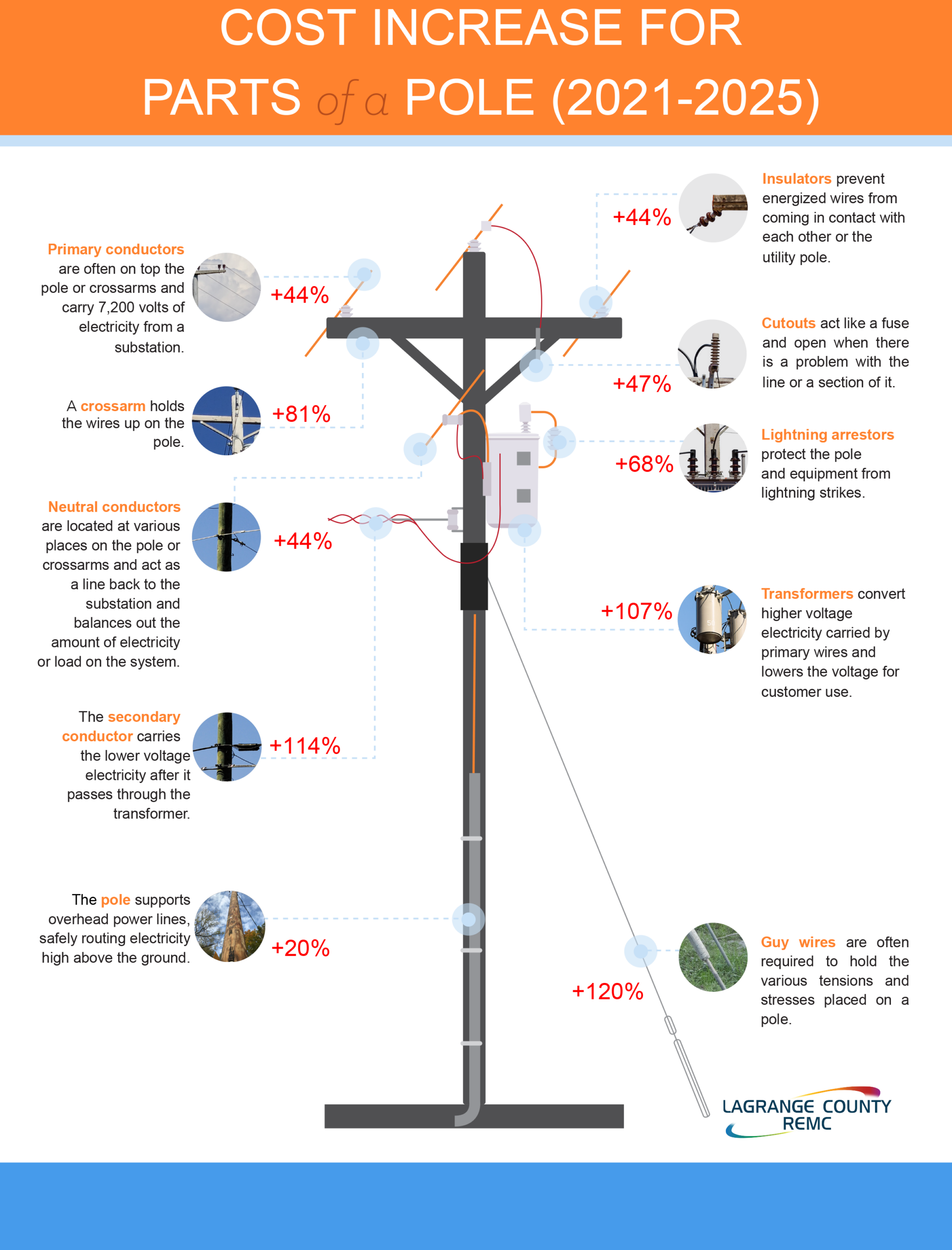 Cost increase for parts of a pole (2021-2025) By Indiana Connection Posted on Feb 04 2026 in LaGrange County REMC Related Stories Addressing increasing costs Trail project is full steam ahead Apply for these amazing youth programs