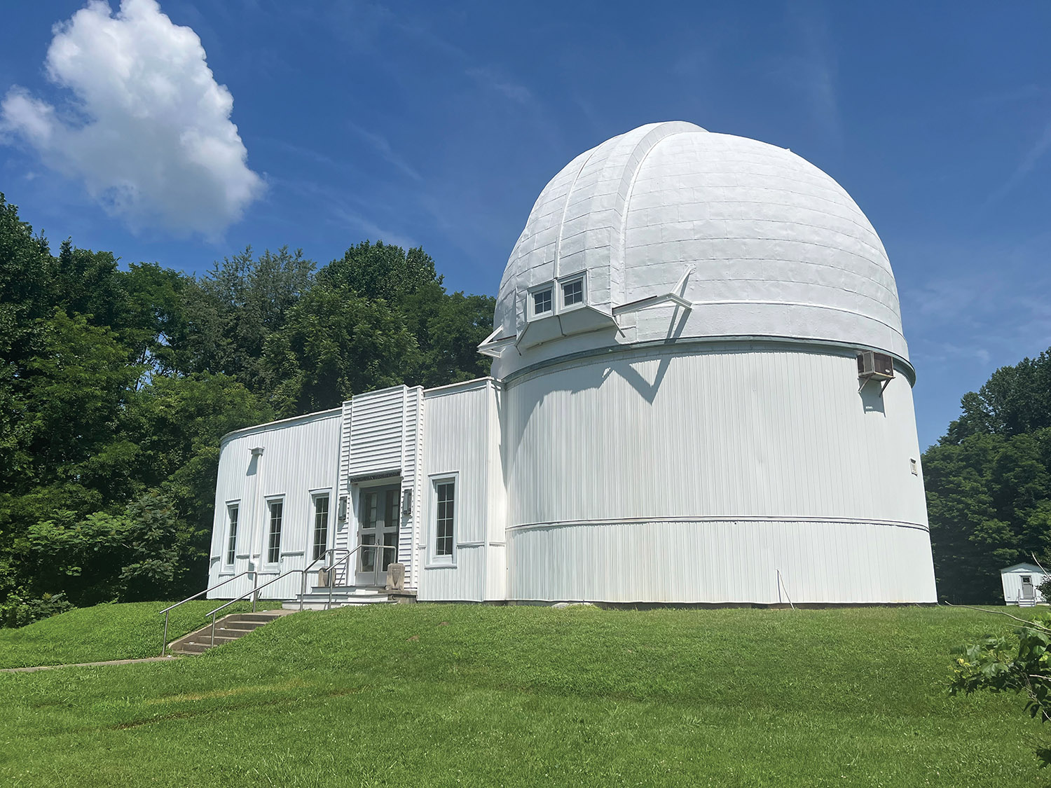 The Goethe Link Observatory in Brooklyn, Indiana, is named after Dr. Goethe Link, an Indianapolis surgeon and amateur astronomer who funded its construction. He donated the observatory to Indiana University in 1948. From 1949 to 1966, it was the Indiana Asteroid Program’s headquarters. For nearly 50 years, IU graduate students and faculty conducted research at the observatory. However, by the 1960s, increasing light pollution made the skies too bright for the observatory’s instruments. Today, the Indiana Astronomical Society maintains the observatory and offers public tours.