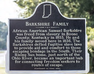 In 1836, Samuel Barkshire and his family moved to Rising Sun from Boone County, Kentucky, after becoming freed slaves. Risking capture and resale back into slavery, the Barkshires became Underground Railroad activists, helping enslaved people of color along the Ohio River — the border of free and enslaved territories — find their way to freedom. Samuel even worked with the wife of his former slaveholder, Nancy Hawkins, who moved to Rising Sun after her husband’s death. She and the Barkshires hid slaves seeking freedom in their homes. The Indiana Historical Bureau and the Ohio County Historical Society designated the Barkshire’s home on North Poplar Street a historical marker in 2018.