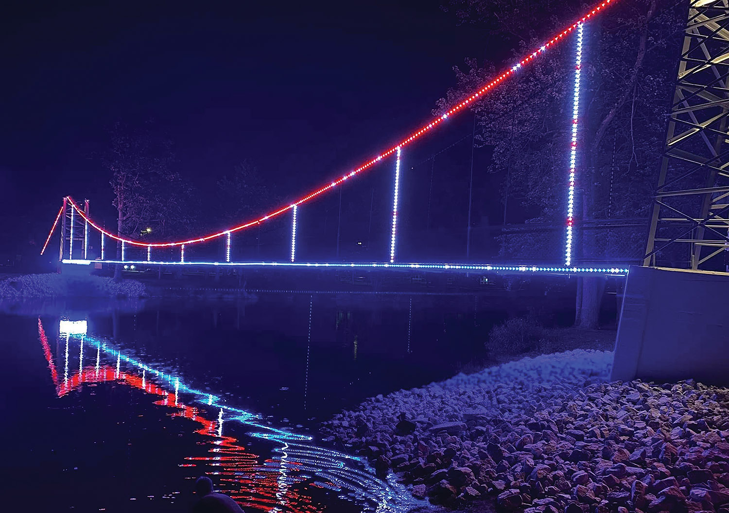 In 2020, the “Light Up Our Legacy Project” began to raise money to install LED lights on the bridge. The goal was reached, and the bridge underwent renovations through the early spring of 2023. The lights were unveiled July 3 in celebration of the bridge’s 100th anniversary.