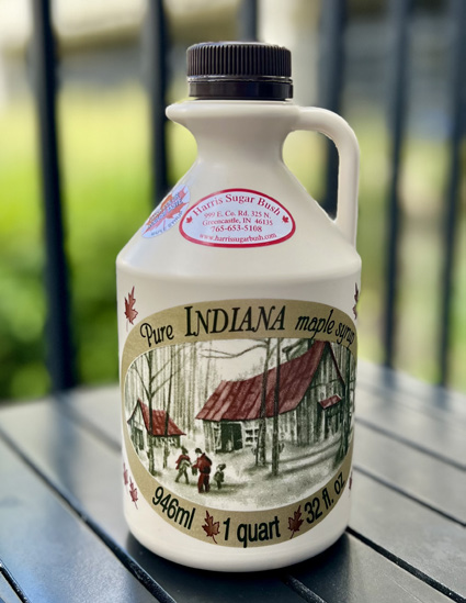 Indiana’s largest maple syrup producer is Harris Sugar Bush, located in Greencastle. Each year in late January and February, owner Arthur Harris taps the farm’s sugar and black maple trees, collecting 40 to 50 gallons of sap to produce a single gallon of syrup. Their syrup is light in color, fine in flavor, and contains no preservatives. Their log cabin store is open year-round, selling their syrup alongside local pancake and waffle mixes, maple candy, and more. Tours of its sugar house are available year-round by appointment as well.