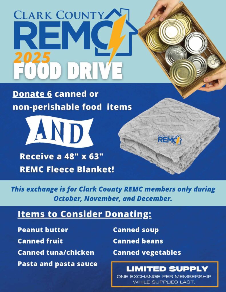 Donate to our food drive By Indiana Connection Posted on Nov 09 2025 in Clark County REMC Related Stories Hoosier Energy advances pollinator habitat conservation efforts Providing reliable service while staying financially strong Shape the future: Run for the board