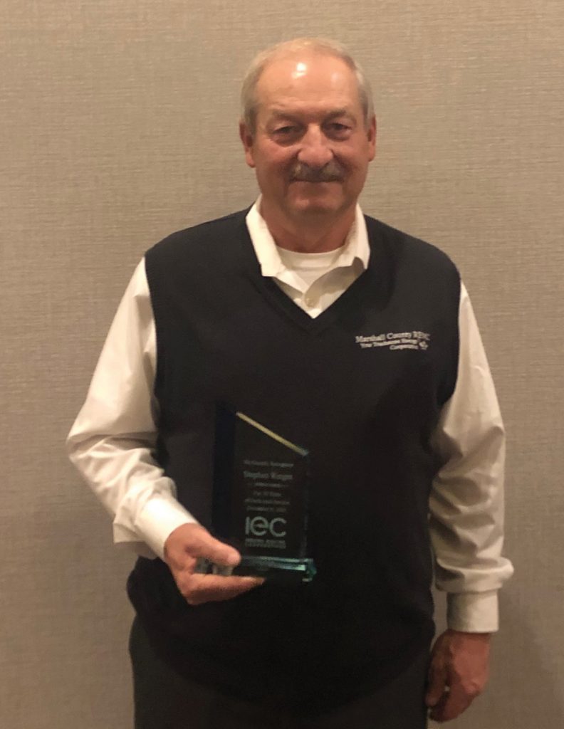 Steve Ringer was recognized for his 30 years of service as a director of Marshall County REMC.