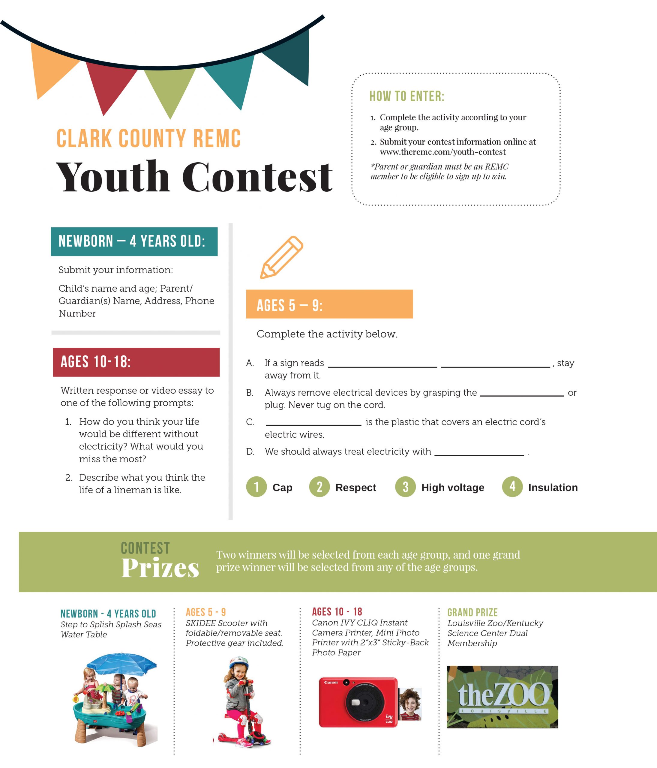Enter Clark County REMC’s Youth Contest By Indiana Connection Posted on May 05 2021 in Clark County REMC Related Stories Hoosier Energy advances pollinator habitat conservation efforts Providing reliable service while staying financially strong Donate to our food drive