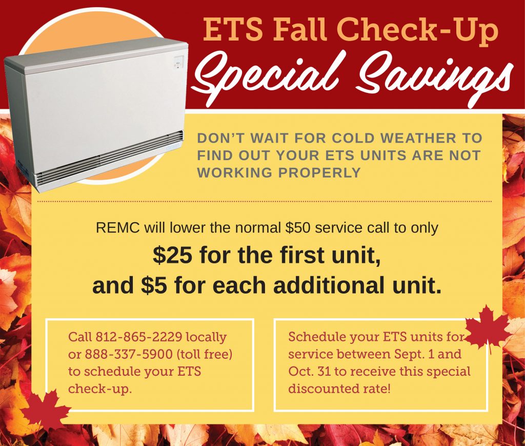 ETS Fall Check-up Special Savings By Indiana Connection Posted on Oct 04 2020 in Orange County REMC Related Stories A season of gratitude and community 2025 Member Appreciation Day Join us for a Christmas toy drive