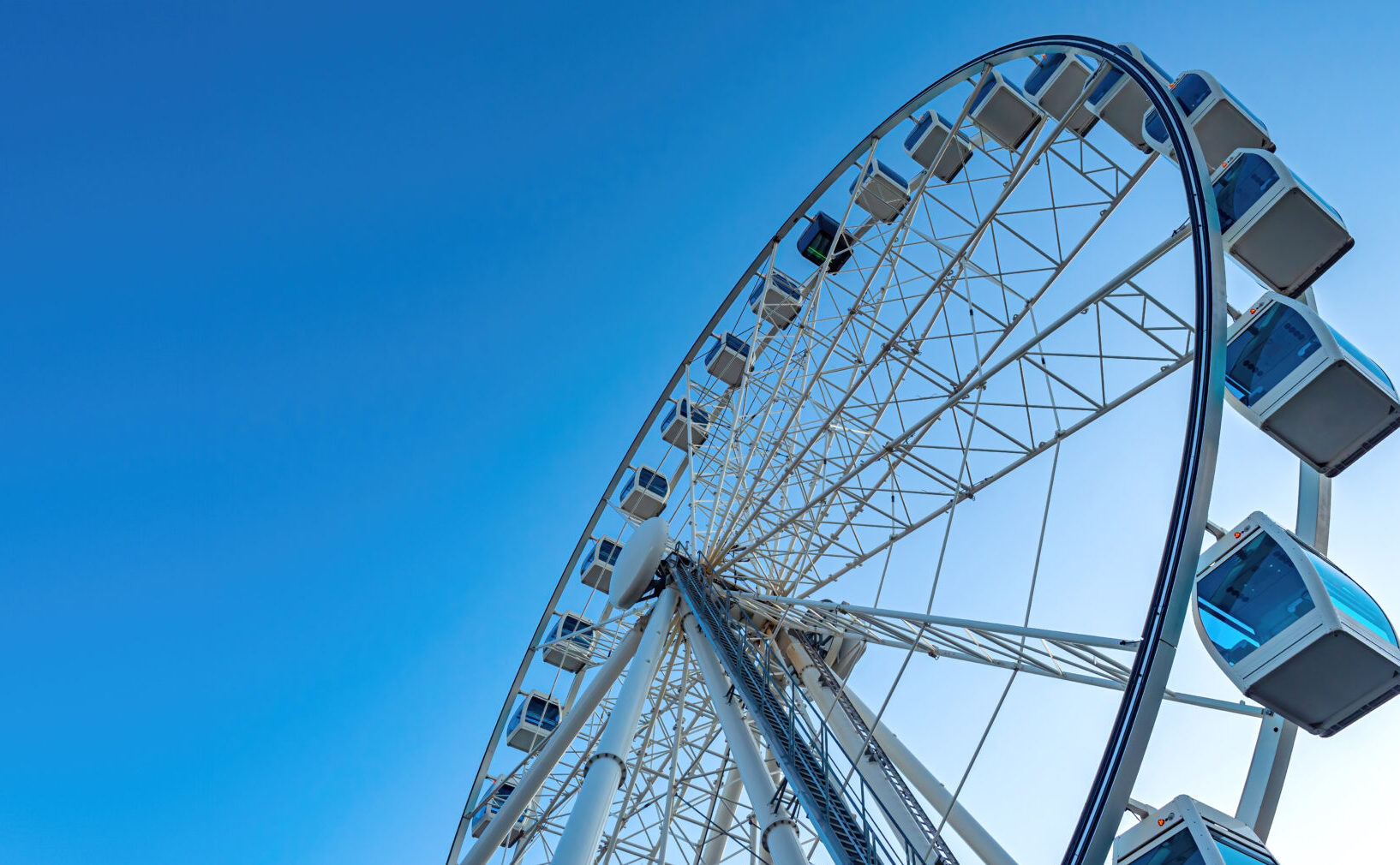 Ferris wheel. Observation attraction on background sky. Ferris wheel with cabins for visitors. Attraction for viewing city from height. Copy space near ferris wheel. Space for text on blue By Karlee Monday Posted on Jun 09 2025 in