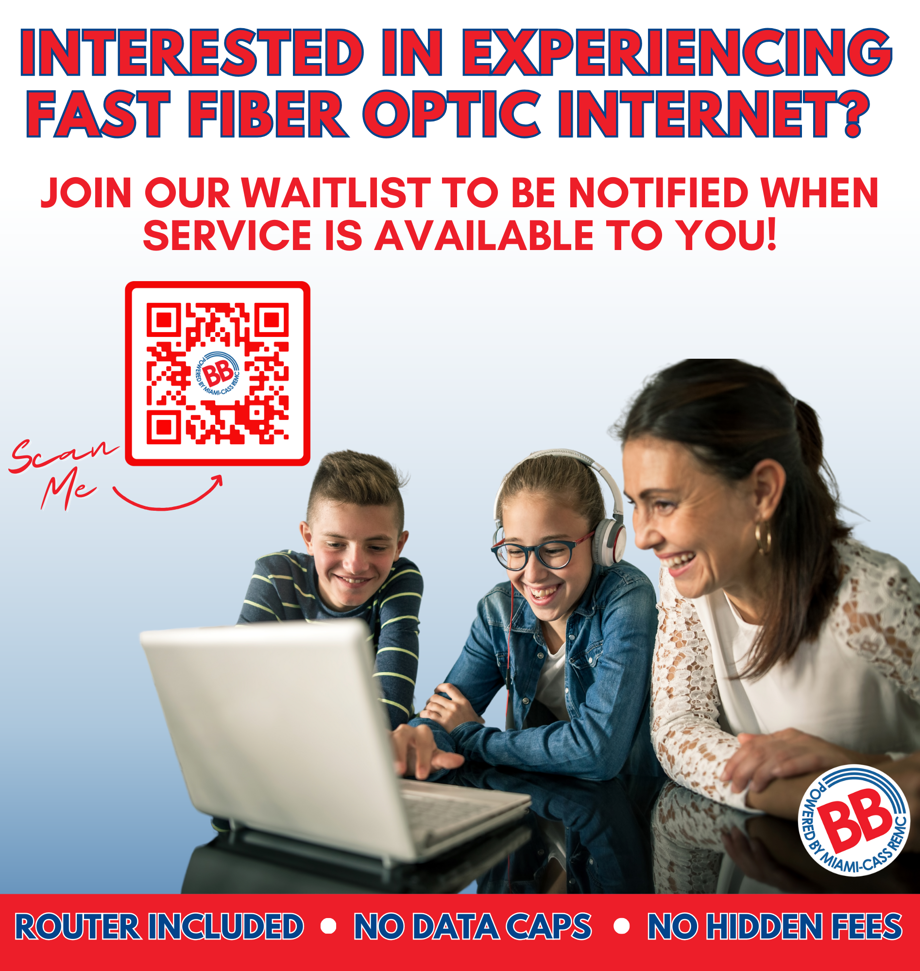 Fast fiber optic internet By Indiana Connection Posted on Jun 13 2025 in Miami-Cass REMC Related Stories Reflecting on 2025, building for 2026 Annual meeting recap Holiday food prep ingredients for safety