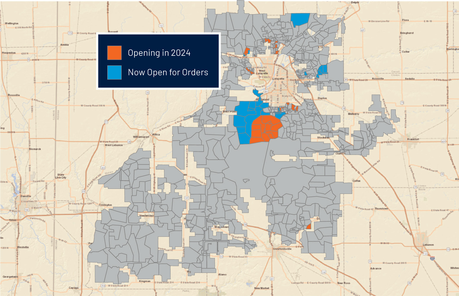 The areas we’re focusing on throughout 2024 are highlighted in ORANGE on the map. Newly opened zones are highlighted in BLUE. Current timelines and details are below.
