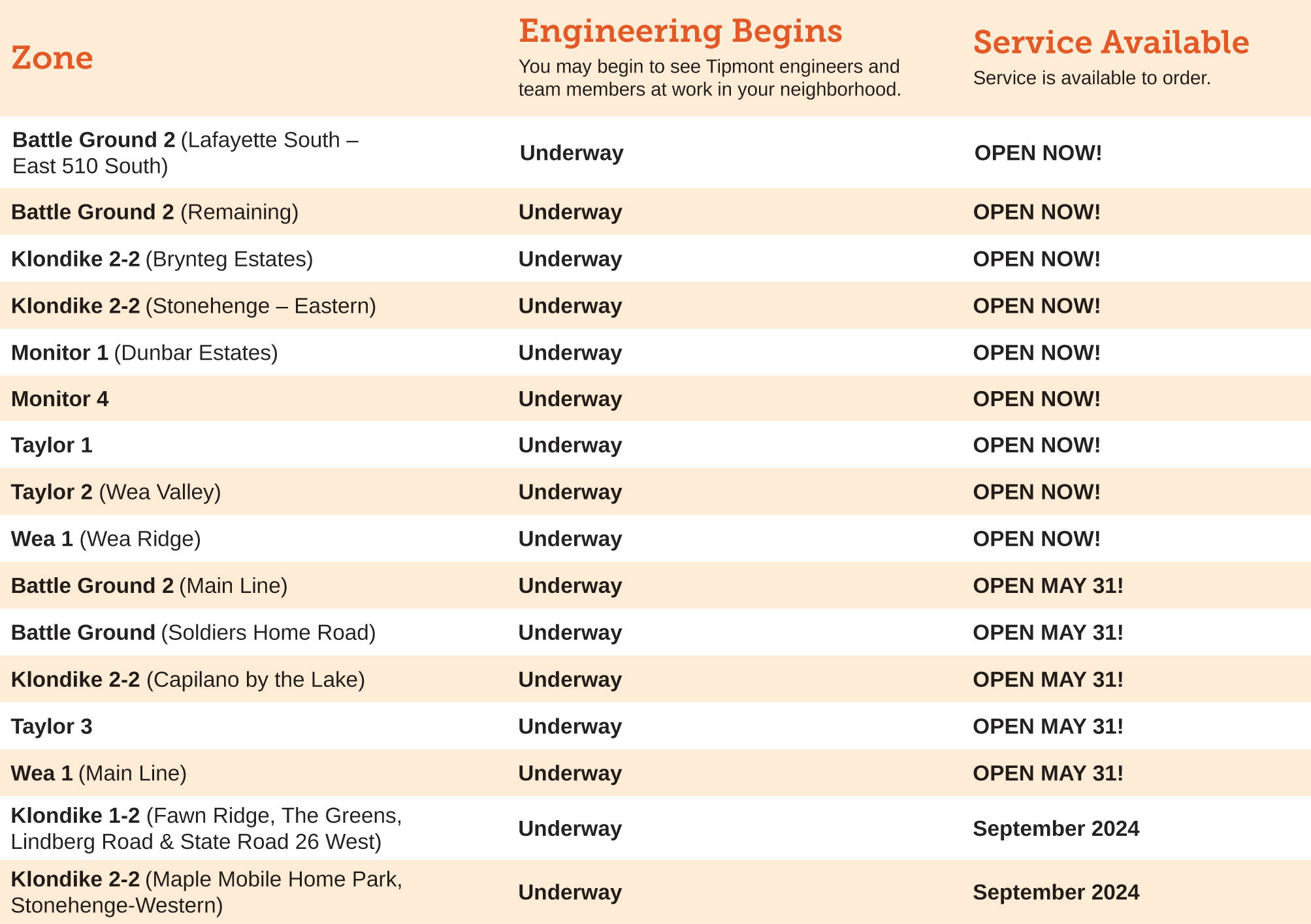 - If you have service, it will say “Tipmont In-Service.” If service is forthcoming, it will give the scheduled date.