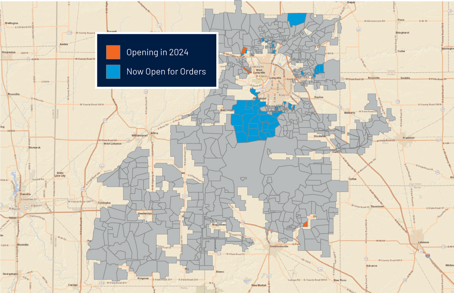 The areas we’re focusing on throughout 2024 are highlighted in ORANGE on the map. Newly opened zones are highlighted in BLUE. Current timelines and details are below.
