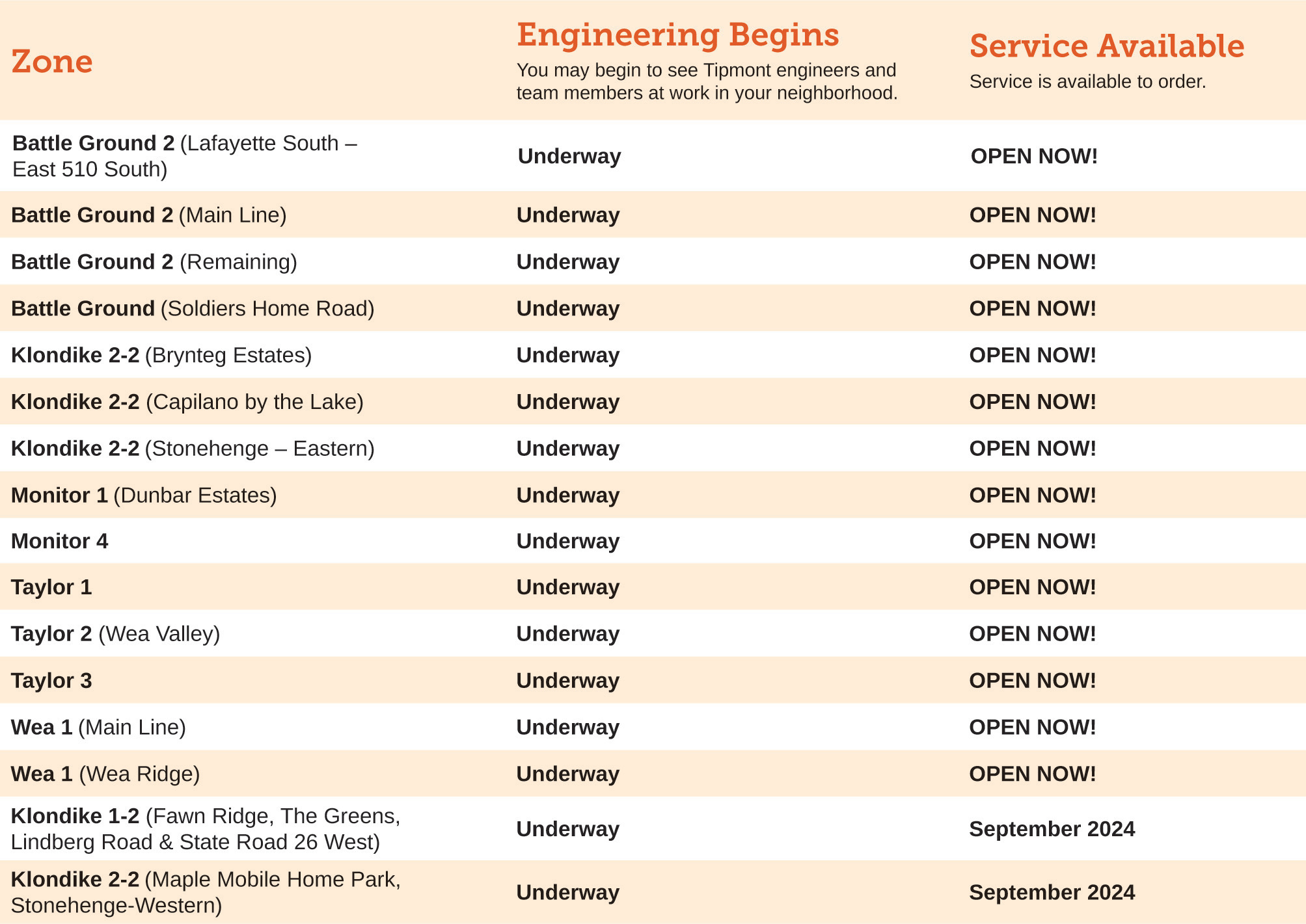 - If you have service, it will say “Tipmont In-Service.” If service is forthcoming, it will give the scheduled date.
