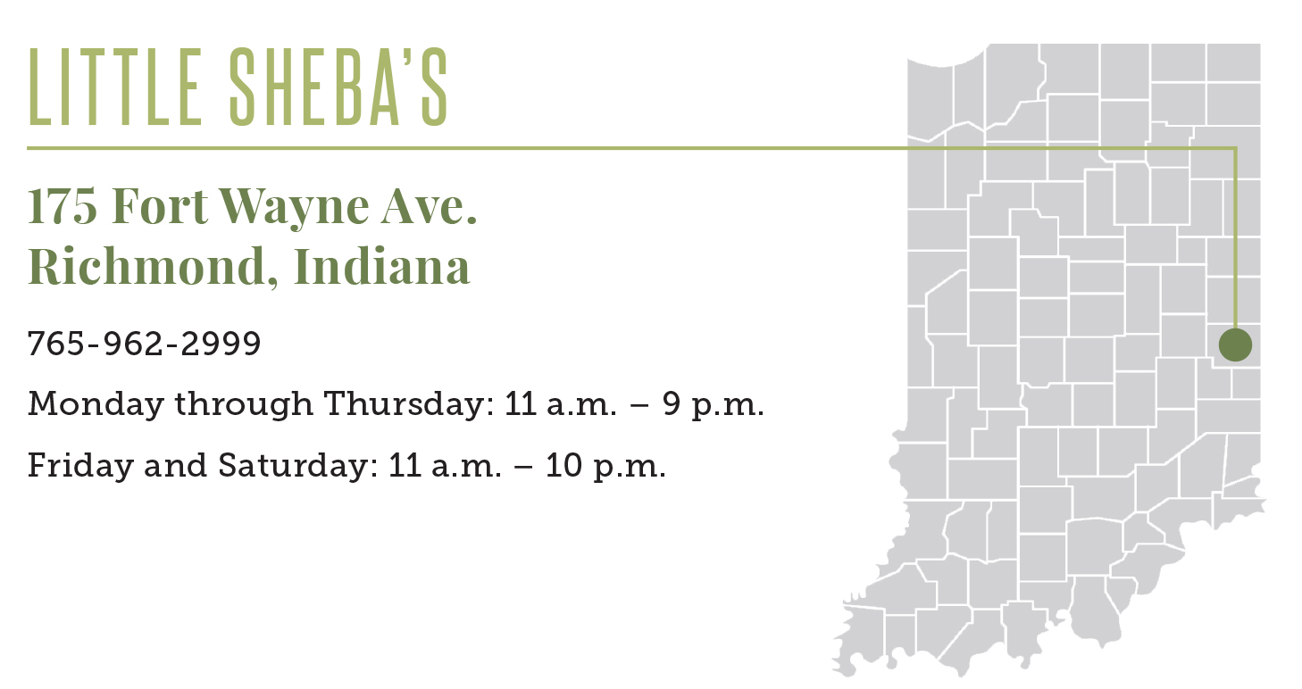 What started as a saucy zinger in marital arguments between John and Sharon Kurtz became their restaurant’s namesake. For nearly 30 years, Little Sheba’s has been a mainstay in the historic Depot District of Richmond on Indiana’s eastern border. The eatery is a few steps from the World’s Largest Chair and the Indiana Football Hall of Fame.