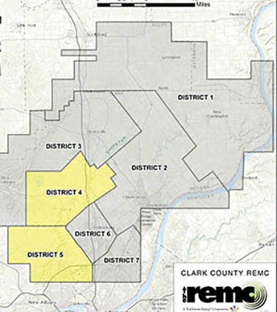 In 2018, REMC members will elect board members representing Districts 4 and 5. District 4 represents Carr and Union townships in Clark County. District 5 represents Lafayette and New Albany townships in Floyd County.